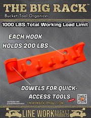 Maintain an organized and efficient work area in your aerial devices with this durable, strong, and extreme weather rated tool organizer. The extra large angled hooks offer more space and quick access to your tools and equipment. Making this a must have tool for any productive lineman!